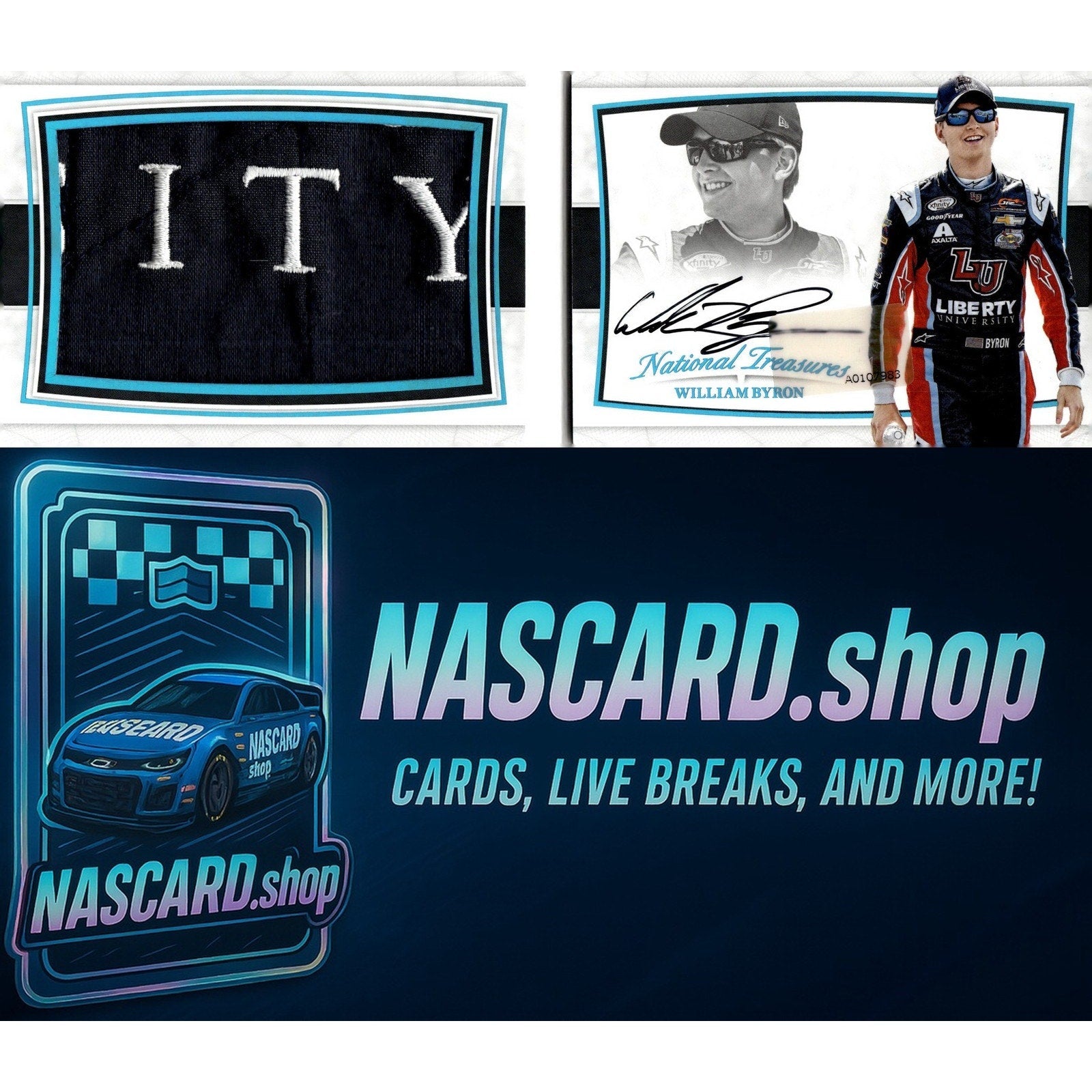 This is a nice example of a 2017 Panini National Treasures #BP-WB William Byron Booklet - Associate Sponsor Patch 1 Signature