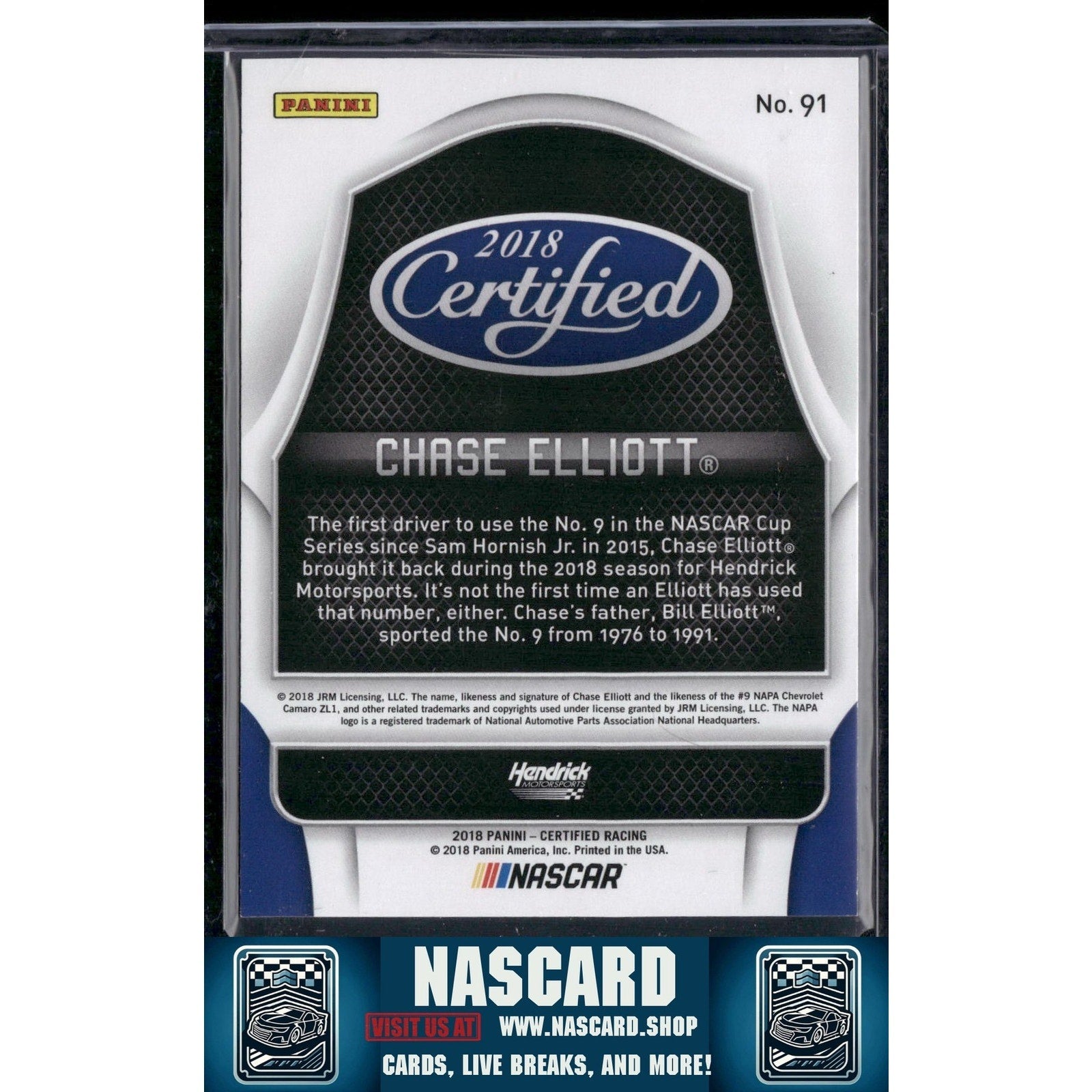 This is a nice example of a 2018 Panini Certified #91 Chase Elliott Red