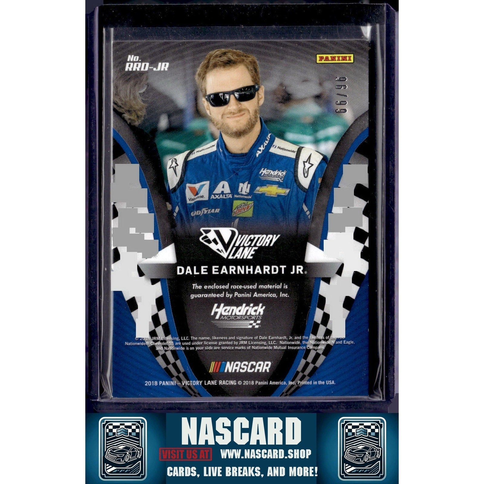 This is a nice example of a 2018 Panini Victory Lane #RRD-JR Dale Earnhardt Jr. Race Ready Dual Materials Green