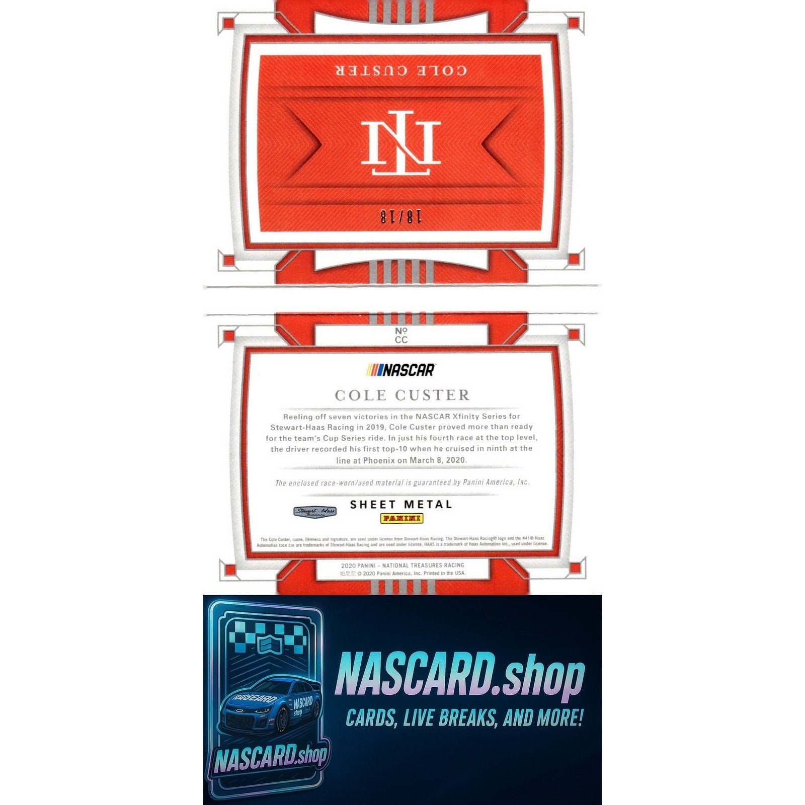 This is a nice example of a 2020 Panini National Treasures #CC Cole Custer Jumbo Sheet Metal Booklet Duals