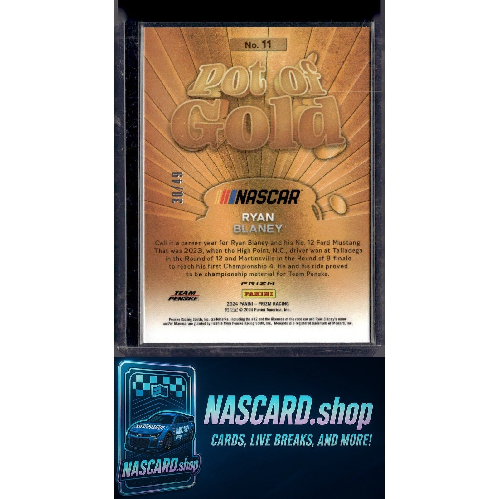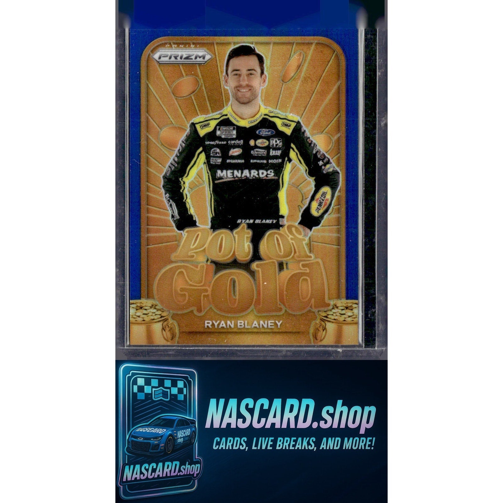This is a nice example of a 2024 Panini Prizm #11 Ryan Blaney Pot Of Gold Blue