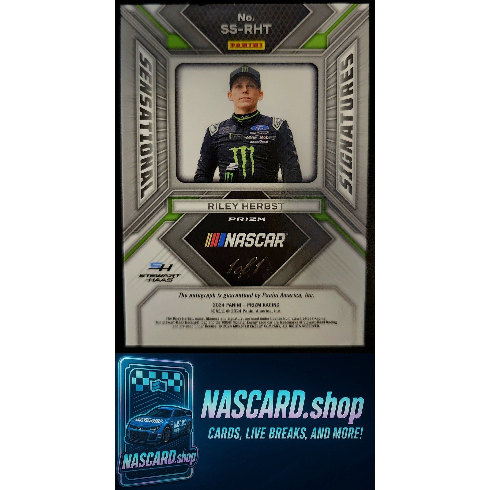 This is a nice example of a 2024 Panini Prizm #SS-RHT Riley Herbst Sensational Signatures Gold Vinyl