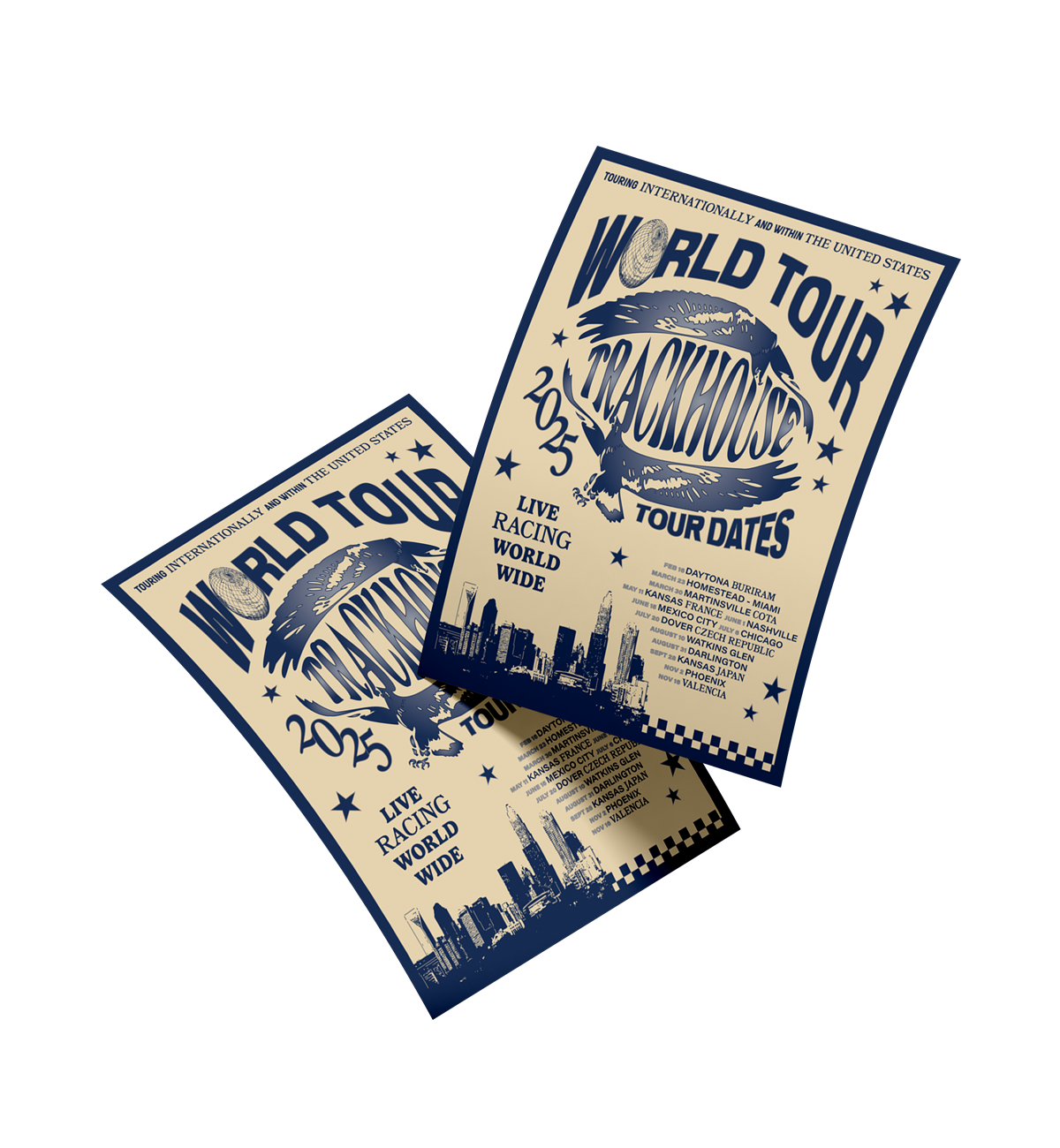 Celebrate the Trackhouse Racing World Tour 2025 with this official limited-edition poster, featuring all 13 iconic race stops across NASCAR and MotoGP. Designed for true Trackhouse fans, this bold, high-quality print brings the energy of the tour straight to your space. Whether you’re collecting patches, rocking the merch, or just love the thrill of racing, this poster is the perfect way to commemorate the season!